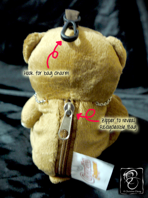 These amazing little bears double as a bag charm as well as a recycleable bag when you unzip its back!